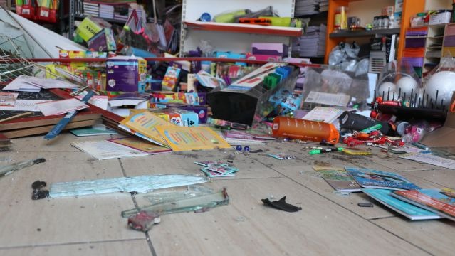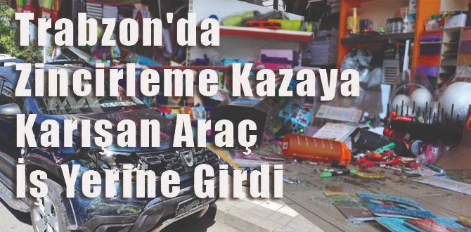 Trabzon'da 3 aracın karıştığı zincirleme trafik kazasında, araçlardan biri çevredeki iş yerine girdi