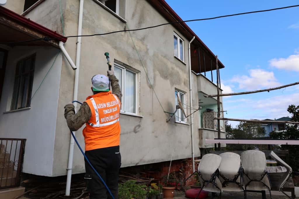YOĞUN MESAİ SÜRÜYORArsin Belediyesi, İl ve İlçe Tarım Müdürlükleri ile koordineli olarak, son dönemlerde tarım alanlarında büyük zarara yol açan kahverengi kokarca böceğine karşı ilaçlama çalışmalarını aralıksız sürdürüyor. Kokarca böceğinin yayılımını kontrol altına almak için yürütülen çalışmalarda, halk sağlığı ön planda tutuluyor. Belediye ekipleri, ilaçlama işlemlerini sadece vatandaşların ikamet etmediği evlerde gerçekleştiriyor. Vatandaşların yaşadığı evlerde ise zehirlenme riski göz önünde bulundurularak ilaçlama yapılmıyor.