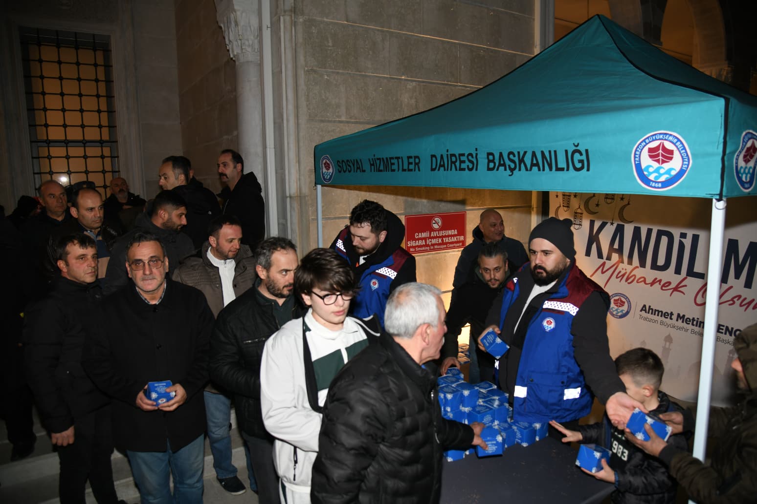 BAKAN BAYRAKTAR VE BAŞKAN GENÇ’TEN MİRAÇ KANDİLİNDE KANDİL SİMİDİ İKRAMIEnerji ve Tabii Kaynaklar Bakanı Alparslan Bayraktar ve Trabzon Büyükşehir Belediye Başkanı Ahmet Metin Genç, Miraç Kandili‘nde vatandaşlara kandil simidi ikramında bulundu.Trabzon Büyükşehir Belediye Başkanı Ahmet Metin Genç, Enerji ve Tabii Kaynaklar Bakanı Alparslan Bayraktar ile AK Parti Genel Başkan Yardımcısı ve Bilgi ve İletişim Teknolojileri Başkanı Dr. Ömer İleri ile birlikte Miraç Kandili dolayısıyla Hanife Hatun Camii’nde düzenlenen programda vatandaşlarla bir araya geldi. Büyükşehir Belediyesi Sosyal Hizmetler Dairesi Başkanlığı tarafından yatsı namazının ardından cami avlusunda gerçekleştirilen programda protokol üyeleri, vatandaşlara kandil simidi ikramında bulundu.KANDİL GECELERİ BİRLİK VE BERABERLİĞİMİZİ PEKİŞTİRİYOR
