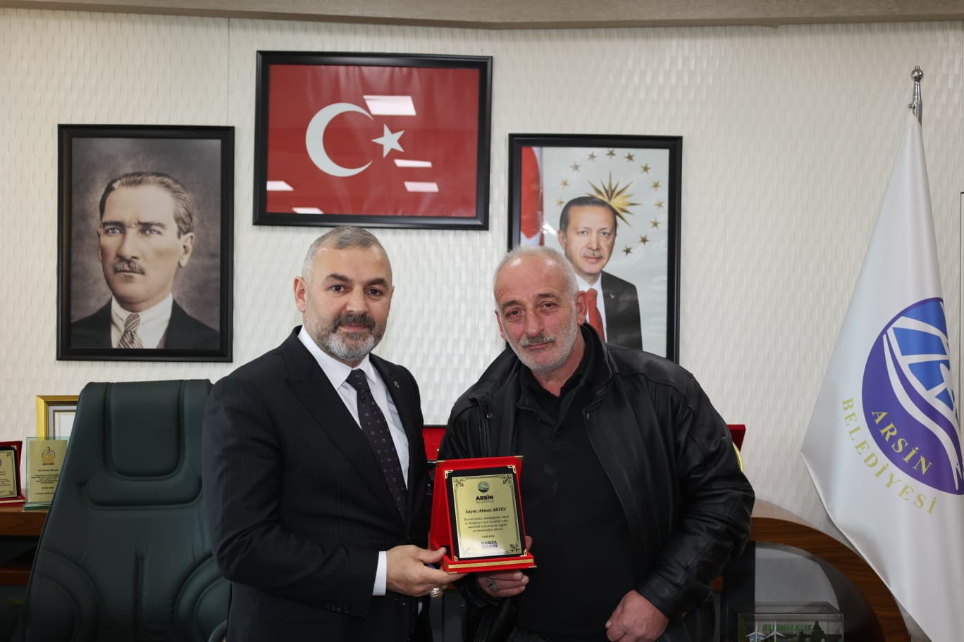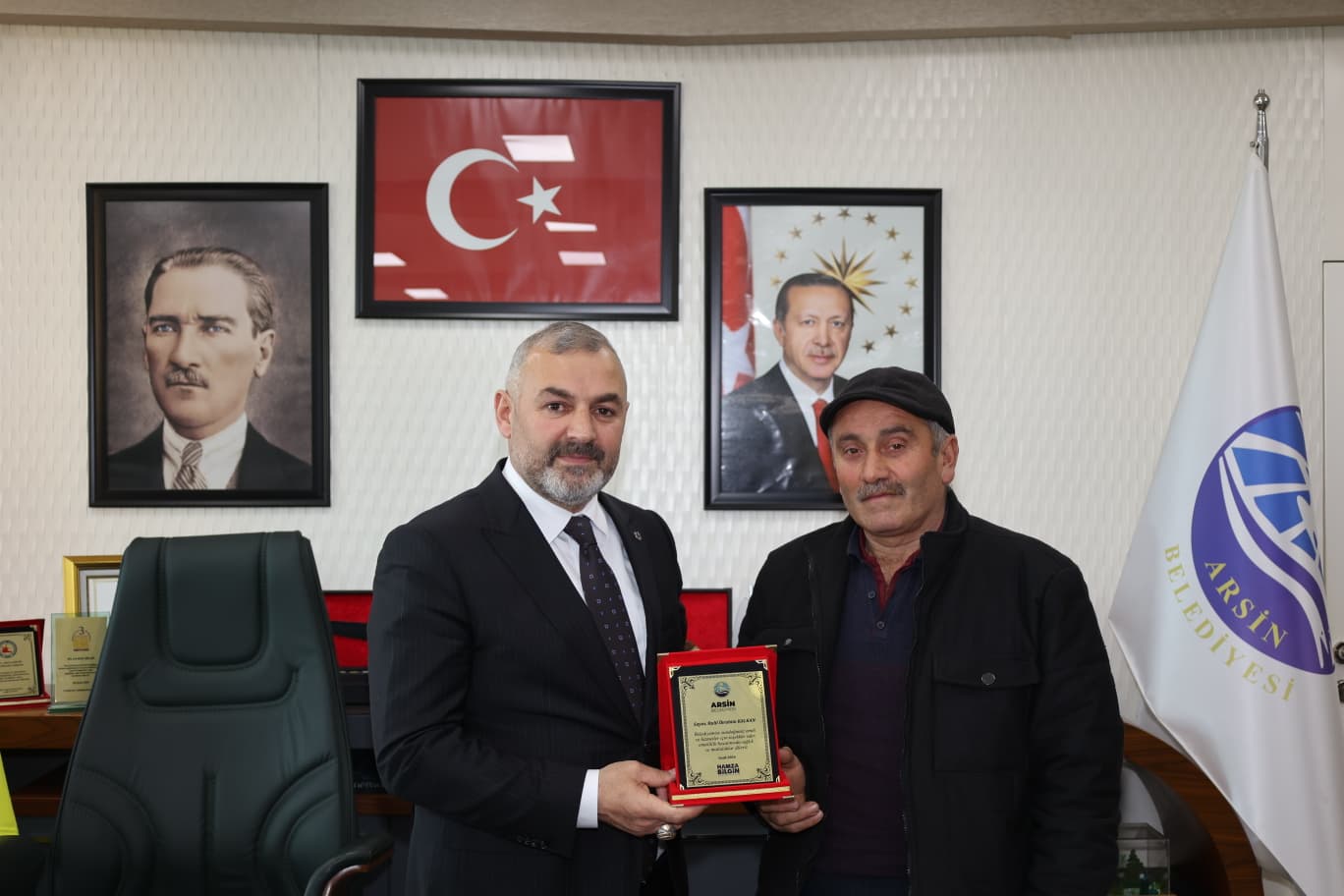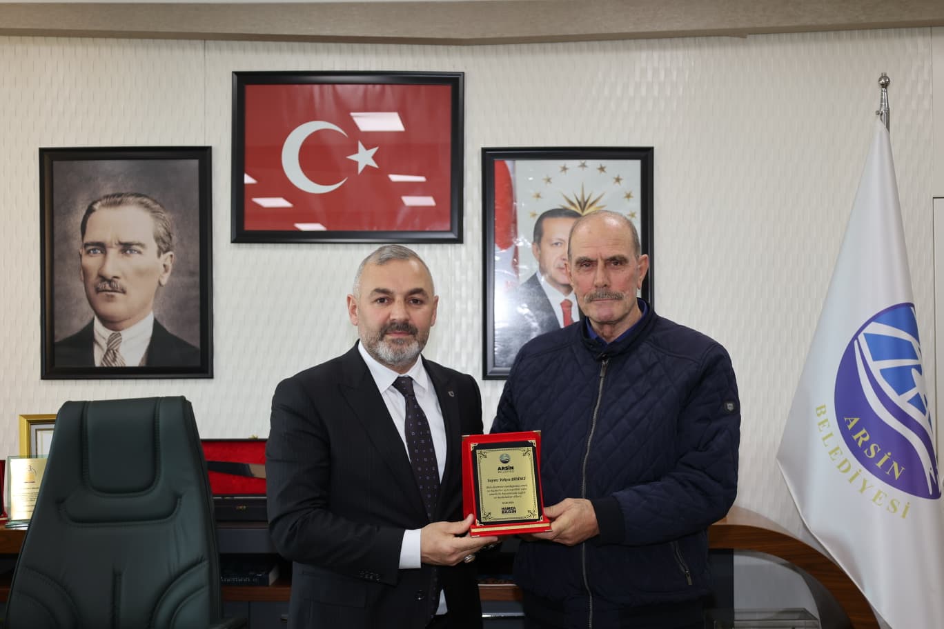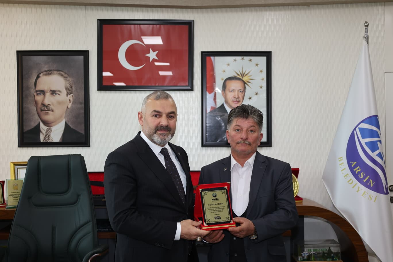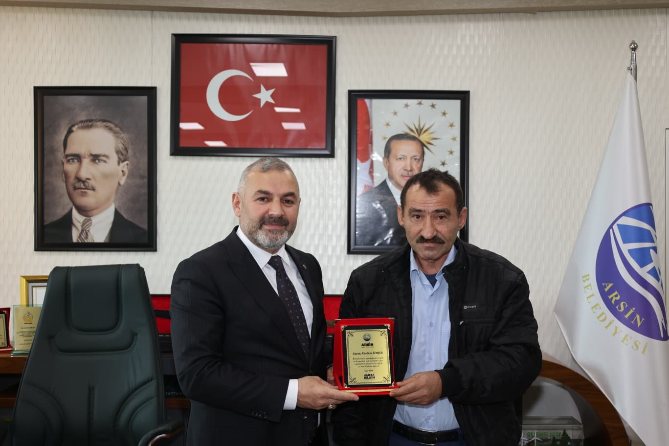 YILLARINI VERDİLERBaşkan Hamza Bilgin, kamu hizmetinin özveri ve fedakârlık gerektirdiğine dikkat çekerek, “Arsin Belediyemize yıllarını vererek ilçemize hizmet etmiş kıymetli çalışma arkadaşlarımızın emekleri hiçbir zaman unutulmaz. Bugün burada onlara olan minnetimizi bir plaketle ifade etmek istedik. Emekli olan tüm personelimize sağlıklı, huzurlu ve mutlu bir yaşam diliyorum.” açıklamasında bulundu.