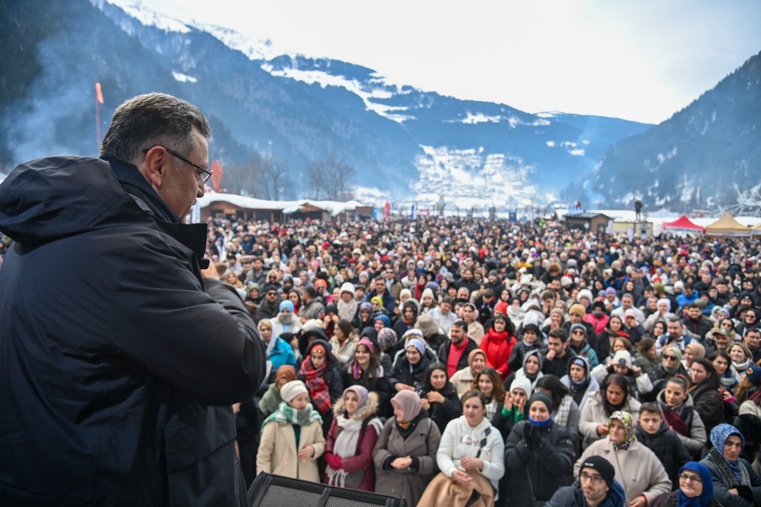 BAŞKAN GENÇ’TEN UZUNGÖL TEŞEKKÜRÜTrabzon Büyükşehir Belediye Başkanı Ahmet Metin Genç, on binlerce kişinin katılımıyla gerçekleştirilen Uzungöl Kış Festivali’ne destek veren paydaş kurumlara ve festivale katılan vatandaşlara teşekkür etti.Trabzon Büyükşehir Belediye Başkanı Ahmet Metin Genç, Uzungöl’de bu yıl ilki düzenlenen Kış Festivali’nin unutulmaz bir şölene dönüştüğünü belirterek, paydaşlara ve katılımcılara teşekkür etti. Festivalin, Trabzon’un kış turizmi potansiyelini tüm dünyaya tanıtan muhteşem bir organizasyona dönüştüğünü vurgulayan Başkan Genç, “Trabzon’umuzu her mevsim yaşayan ve yaşatan marka bir kent yapma yolundaki kararlılığımız, güçlü iş birlikleriyle artarak devam edecektir” dedi.ŞEHRİN ORGANİZASYON KABİLİYETİNİN ÖRNEĞİDİR