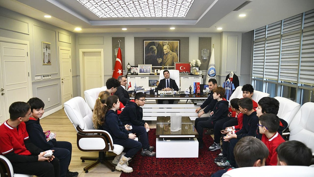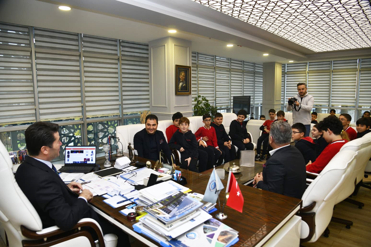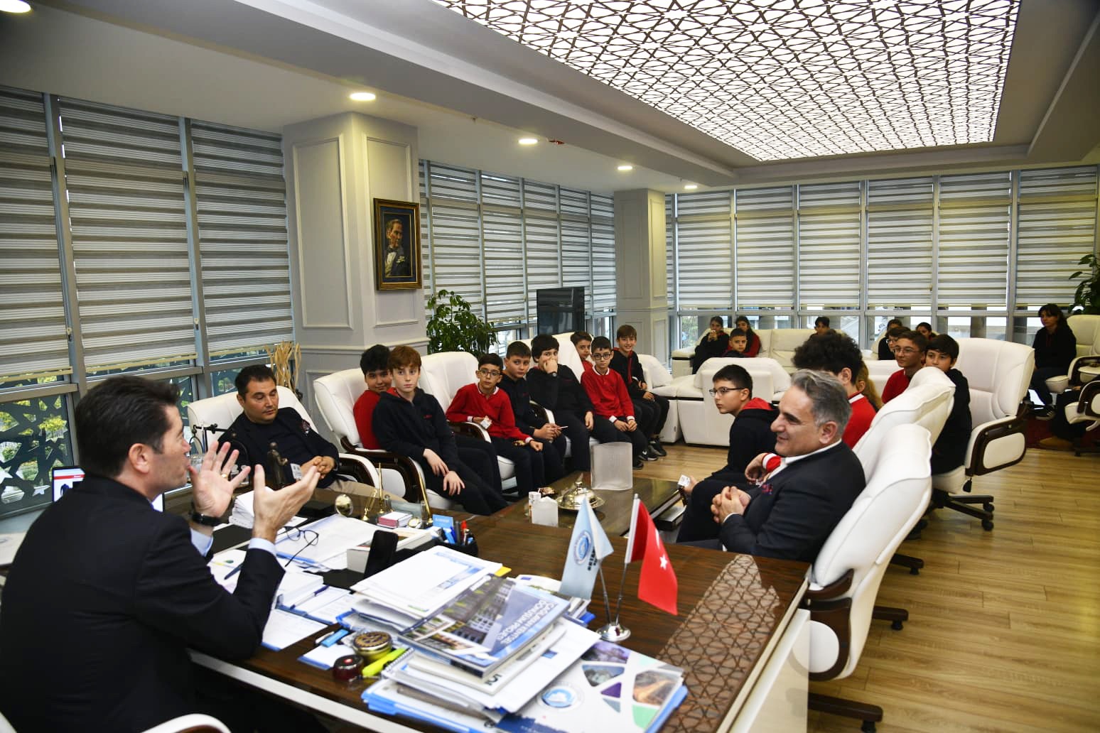 Amerikan Matematik Olimpiyatları’nda dereceye giren Bener Cordan Ortaokulu öğrencileri, Okul Müdürü İbrahim Soysal ve Müdür Yardımcısı İsmail Yurdusev ile birlikte Başkan Kaya’yı ziyaret etti. Bener Cordan Ortaokulu’nun 5 altın, 14 gümüş ve 10 bronz olmak üzere toplam 29 madalya kazandığını kaydeden Müdür Soysal, “Çocuklarımız bu başarılarıyla, Singapur Uluslararası Matematik Olimpiyatı Mücadelesi’ne (SIMOC) katılmaya ve ülkemizi temsil etmeye hak kazandılar” dedi.“TÜRKİYE’NİN AYDINLIK GELECEĞİNİ SİZLERLE İNŞA EDECEĞİZ”