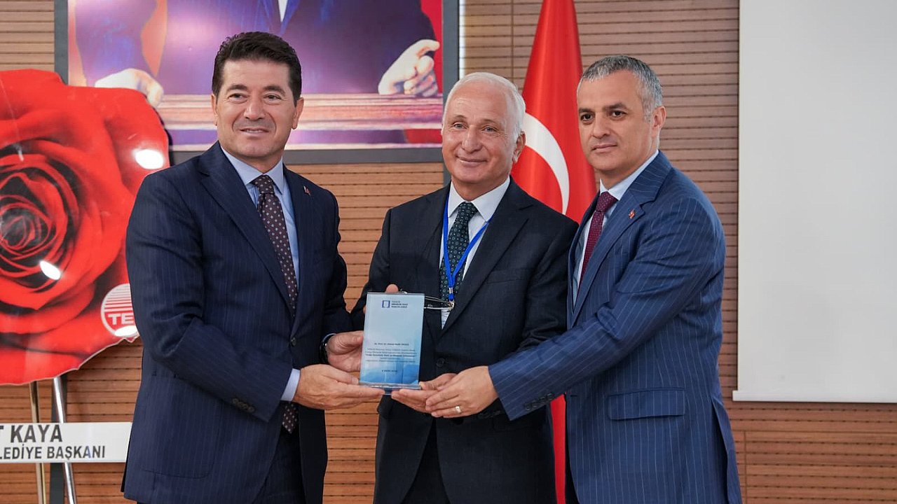 KTÜ Mimarlık Fakültesi Şehircilik Anabilim Dalı Başkanı Prof. Dr. Ahmet Melik Öksüz’ün ‘Geçmişten Günümüze Doğu Karadeniz Kentleri’ konulu sunumunu dinleyen Başkan Kaya, Prof. Dr. Öksüz’e plaket verdi.PANEL, 3 AYRI OTURUMDA YAPILAN SUNUMLARLA DEVAM ETTİ
