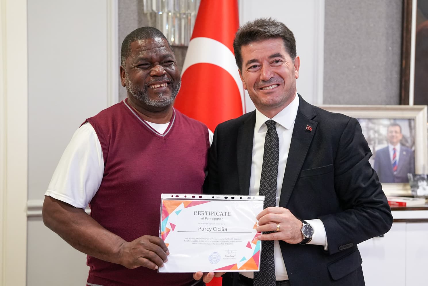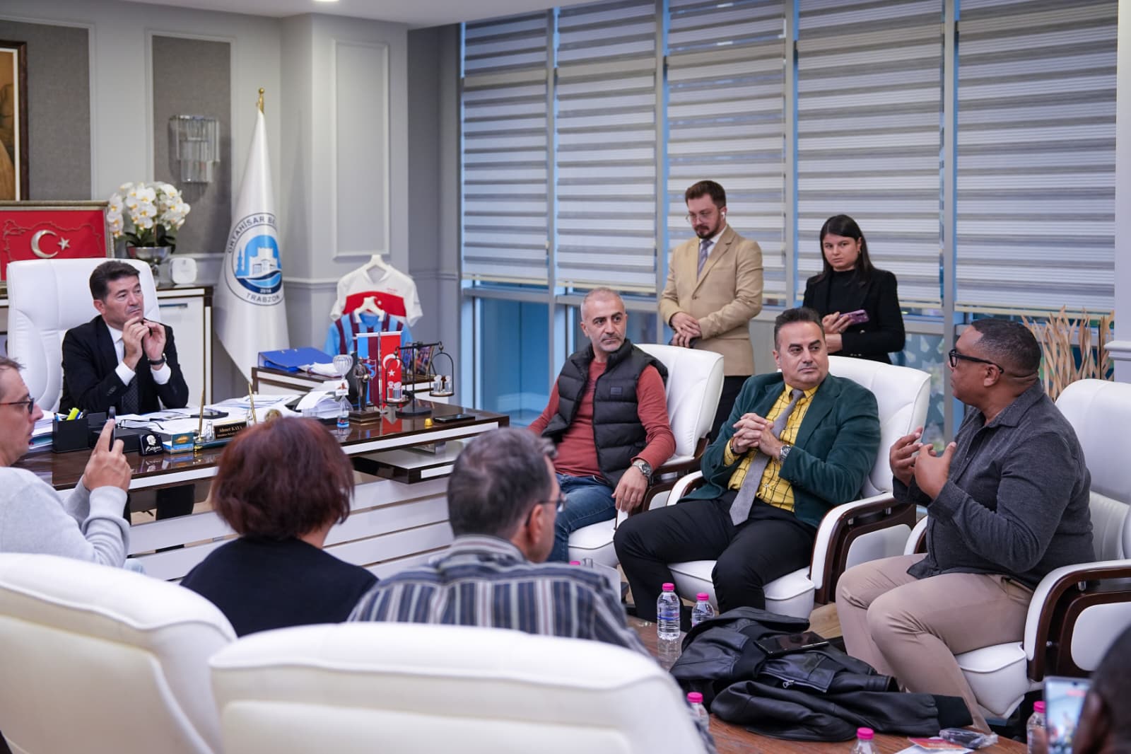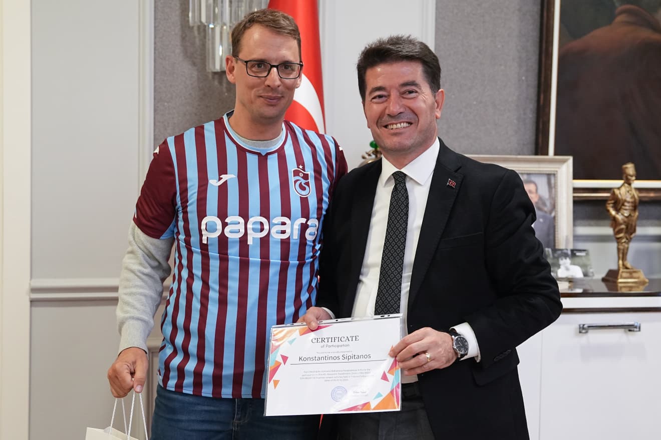 Ziyaretin sonunda misafir öğretim görevlileri, proje sürecinde sağladığı destek ve misafirperverliği için Başkan Kaya’ya teşekkür etti. Başkan Kaya, heyet üyelerine Trabzonspor forması hediye etti.