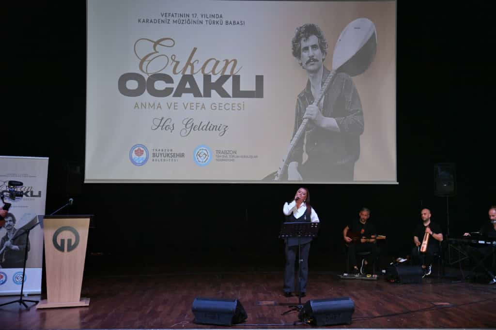 Erkan Ocaklı, vefatının 17. yılında anıldıBAŞKAN GENÇ: “ERKAN OCAKLI’NIN MİRASI HEPİMİZİN HAFIZASIDIR”Karadeniz müziğinin efsane isimlerinden Erkan Ocaklı, vefatının 17’nci yılında düzenlenen özel bir geceyle anıldı. Trabzon Büyükşehir Belediye Başkanı Ahmet Metin Genç, Ocaklı’nın bıraktığı kültürel mirasın sadece Karadeniz’in değil, tüm Türkiye’nin ortak hafızası olduğunu vurguladı.Trabzon Büyükşehir Belediyesi ile Trabzon Tüm Sivil Toplum Kuruluşları Federasyonu iş birliğinde düzenlenen Erkan Ocaklı’yı Anma Gecesi yoğun katılımla gerçekleştirildi. Programa Başkan Genç’in yanı sıra Köprübaşı Belediye Başkanı Ali Aydın, Trabzon Şehit Aileleri Sosyal Yardımlaşma ve Dayanışma Derneği Başkanı Şeref İşler, Trabzon Tüm Sivil Toplum Kuruluşları Federasyonu Başkanı Mustafa Durmuş, merhum sanatçının ailesi ve çok sayıda seveni katıldı. Kur’an-ı Kerim tilavetiyle başlayan gecede, sanatçılar Adnan Yılmaz, Zeynep Birinci, Elif Köse ve Zafer Akkol, Erkan Ocaklı’nın sevilen eserlerini seslendirdi.“ŞEHRİMİZİ ULUSAL VE ULUSLARARASI ARENADA TEMSİL ETMİŞTİR”
