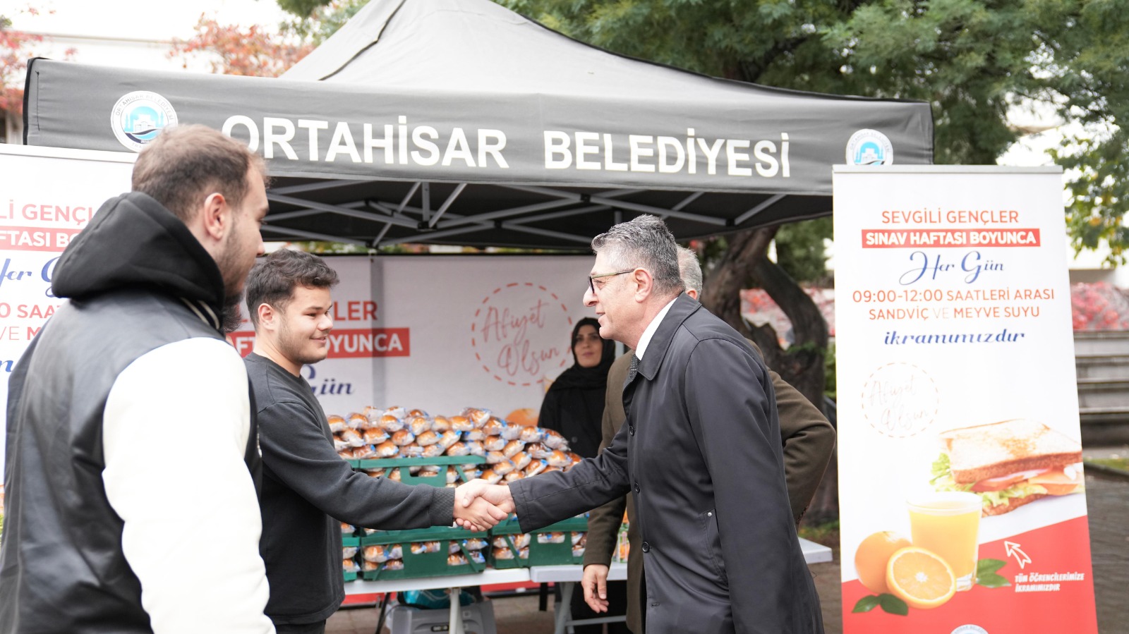 Öğrencilere yönelik birçok proje ve desteği hayata geçirdiklerini belirten Ortahisar Belediye Başkan Yardımcısı Ernul Arslan, “Başkanımız Ahmet Kaya, eğitim-öğretim faaliyetlerine çok önem veriyor. Okul öncesinden üniversiteye kadar çeşitli proje ve desteklerle çocuklarımızın, gençlerimizin yanındayız. Bu kapsamda üniversite öğrencilerimize, sınav haftalarında geleneksel hale getirdiğimiz stantlarımızı kurarak sandviç ve meyve suyu ikram ediyoruz. Kahvaltı yapamadan okula gelen öğrencilerimizin sınavlara tok olarak girmesi, başarısına da katkı sağlayacaktır. Bütün öğrencilerimize sınavlarında başarılar diliyorum” dedi.