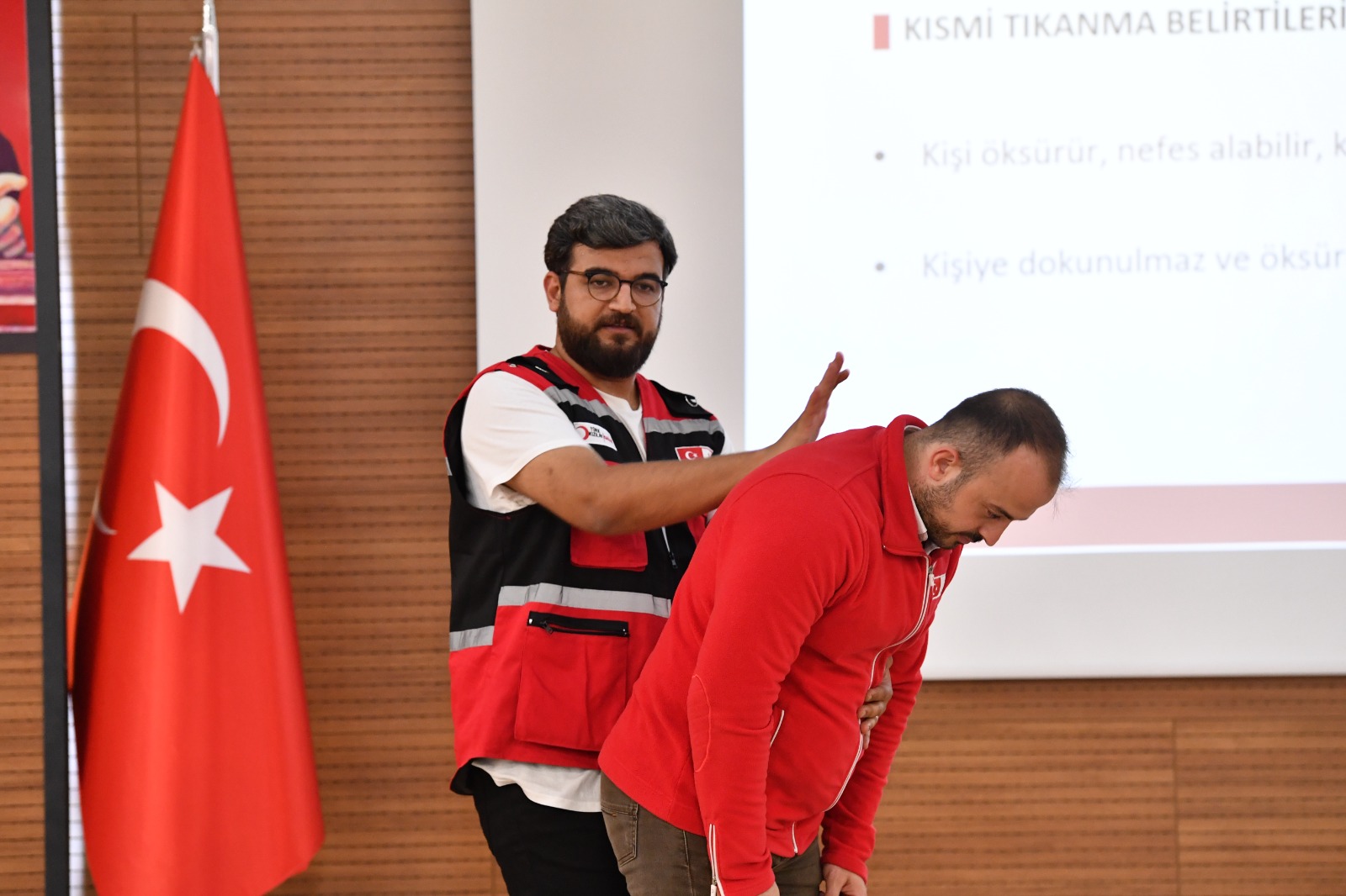 ORTAHİSAR BELEDİYESİ PERSONELİNE İLK YARDIM EĞİTİMİ VERİLDİOrtahisar Belediyesi personeline, İlk Yardım Bilinçlendirme Eğitimi verildi. Türk Kızılay Derneği tarafından verilen eğitimde, ilk yardımın temel uygulamaları ve olay anında doğru müdahale yöntemleri, uygulamalı olarak gösterildi.Türk Kızılay Derneği tarafından yürütülen 81 İl İlk Yardım Yaygınlaştırma Projesi kapsamında, Ortahisar Belediyesi personeline İlk Yardım Bilinçlendirme Eğitimi verildi. İnsan Kaynakları Müdürlüğü koordinesinde, Orhan Karakullukçu Toplantı Salonu’nda düzenlenen eğitime, Belediye Başkan Yardımcısı Özer İskender, birim müdürleri ve belediye personeli katıldı. Uygulamalı bilgilendirme ve interaktif eğitimle katılımcılara, ilk yardımın temel uygulamaları ve olay anında doğru müdahale yöntemleri aktarıldı. İSKENDER: “İLK YARDIM BİLGİSİ HAYAT KURTARIR”Eğitim programının açılış konuşmasını yapan Belediye Başkan Yardımcısı Özer İskender, ilk yardım eğitiminin afet ve acil durumlarda hayati önem taşıdığını vurguladı. Türkiye’nin bir afet ülkesi olduğunu belirten İskender, “Ülkemizin jeolojik ve coğrafik koşulları sebebiyle sık sık afetlerle karşı karşıya kalabiliyoruz. Bu afetler karşısında alınması gereken önlemlerin yanı sıra ilk yardım bilgisi de hayati önem taşıyor. Sağlıkçılarımıza kısa sürede ulaşamadığımız koşullarda, ilk yardım bilgisiyle hayat kurtarabiliriz. Halka hizmet eden bir kurum olarak da belediye personelimizin ilk yardım konusunda bilgi sahibi olması, özellikle afet durumlarında büyük önem taşıyor. Bu eğitimin gerçekleşmesinde başta Kızılay personelleri ve İnsan Kaynakları Müdürlüğümüz olmak üzere emeği geçenlere teşekkür ediyorum” dedi. HEİMLİCH MANEVRASI GÖSTERİLDİEğitimde ilk yardım konusunda bilgi veren Kızılay İlk Yardım Uzmanı Hamza Zengin, temel acil müdahalenin sadece sağlıkçılar tarafından değil bütün sağlıklı bireyler tarafından uygulanabileceğini söyledi. İlk yardımın koruma, bildirme ve kurtarma olmak üzere üç temel süreçten oluştuğunu belirten Zengin, solunum yolu tıkanıkları, bilinç bozuklukları, yanma, donma, kanama, sara krizi gibi acil durumlarda yapılması gerekenler konusunda bilgi verdi. Zengin, boğaza cisim kaçması ve nefes yolunun tıkanması gibi durumlarda hayati önem taşıyan Heimlich manevrasını uygulamalı olarak gösterdi. AFET VE KRİZ DÖNEMLERİNDE PSİKOLOJİK YAKLAŞIMLAR AKTARILDIAfet Acil Psikososyal Destek Uzmanı Emre İpekçi ise afet ve kriz dönemlerinde uygulanabilecek psikososyal destek ve psikolojik ilk yardım yaklaşımlarını aktardı. Katılımcılarla interaktif bir eğitim gerçekleştiren bireylerin travma karşısındaki dayanıklılığını artırmaya yönelik uygulamalı örnekler paylaştı.Eğitimin sonunda Başkan Yardımcısı İskender, eğitimi gerçekleştiren Kızılay personeline teşekkür belgesi verdi.