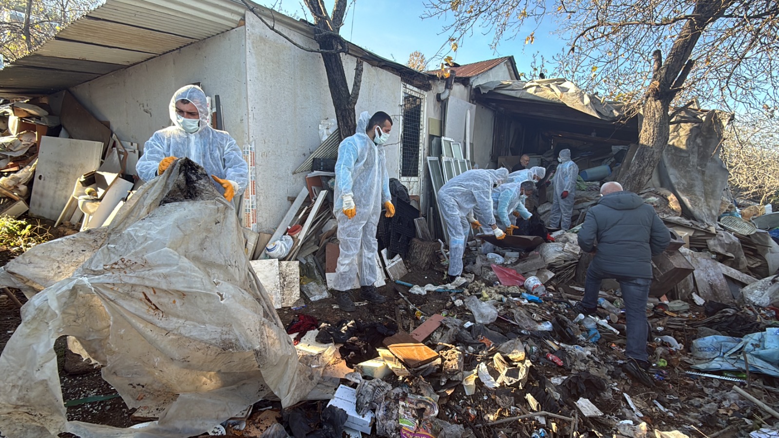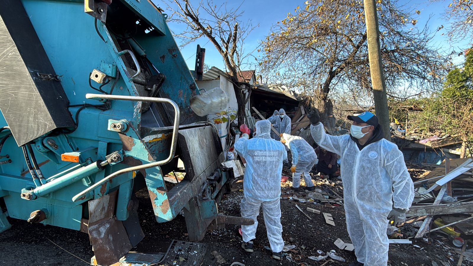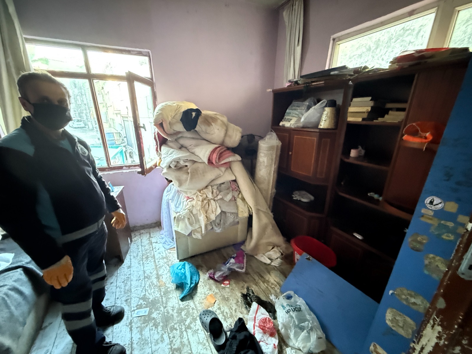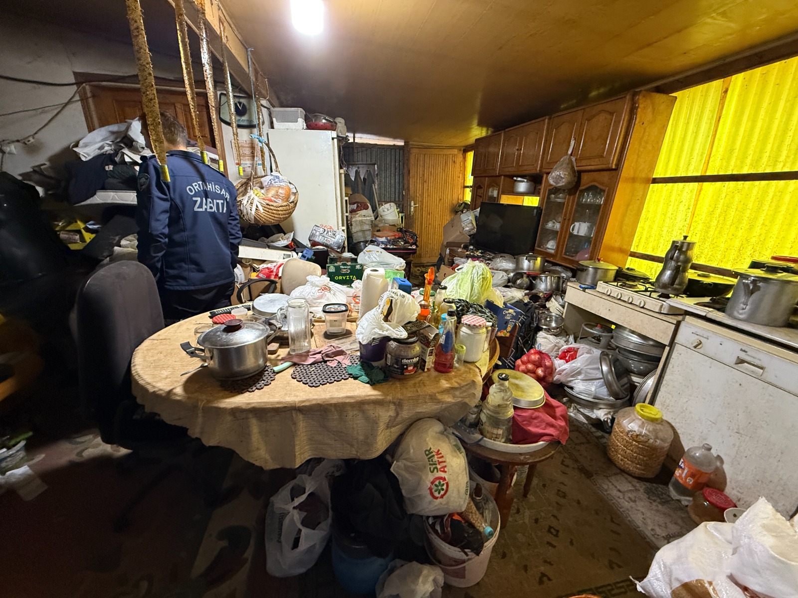 Yapılan incelemelerde evlerin içinde ve dışında büyük miktarlarda çöp ve atık malzemelerin depolandığı tespit edildi. Tonlarca çöp ve atık madde, iş makineleriyle çöp kamyonlarına yüklenerek bertaraf edilirken, evler ve çevresi, ilaçlama çalışmalarıyla dezenfekte edildi. Yapılan çalışmalarla kötü kokulara son verilirken, görüntü kirliliği de ortadan kaldırıldı.