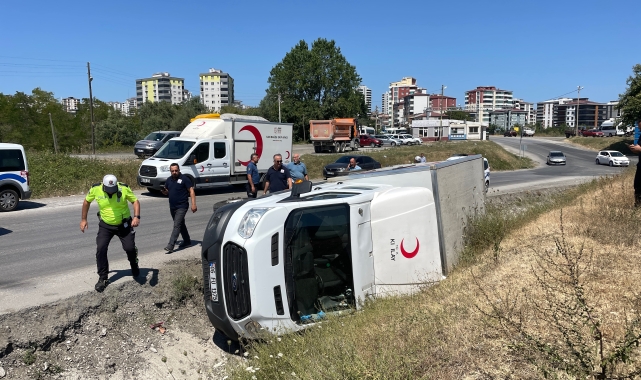 Samsun'da Türk Kızılayın kan toplama aracı devrildi, sürücü yaralandı
