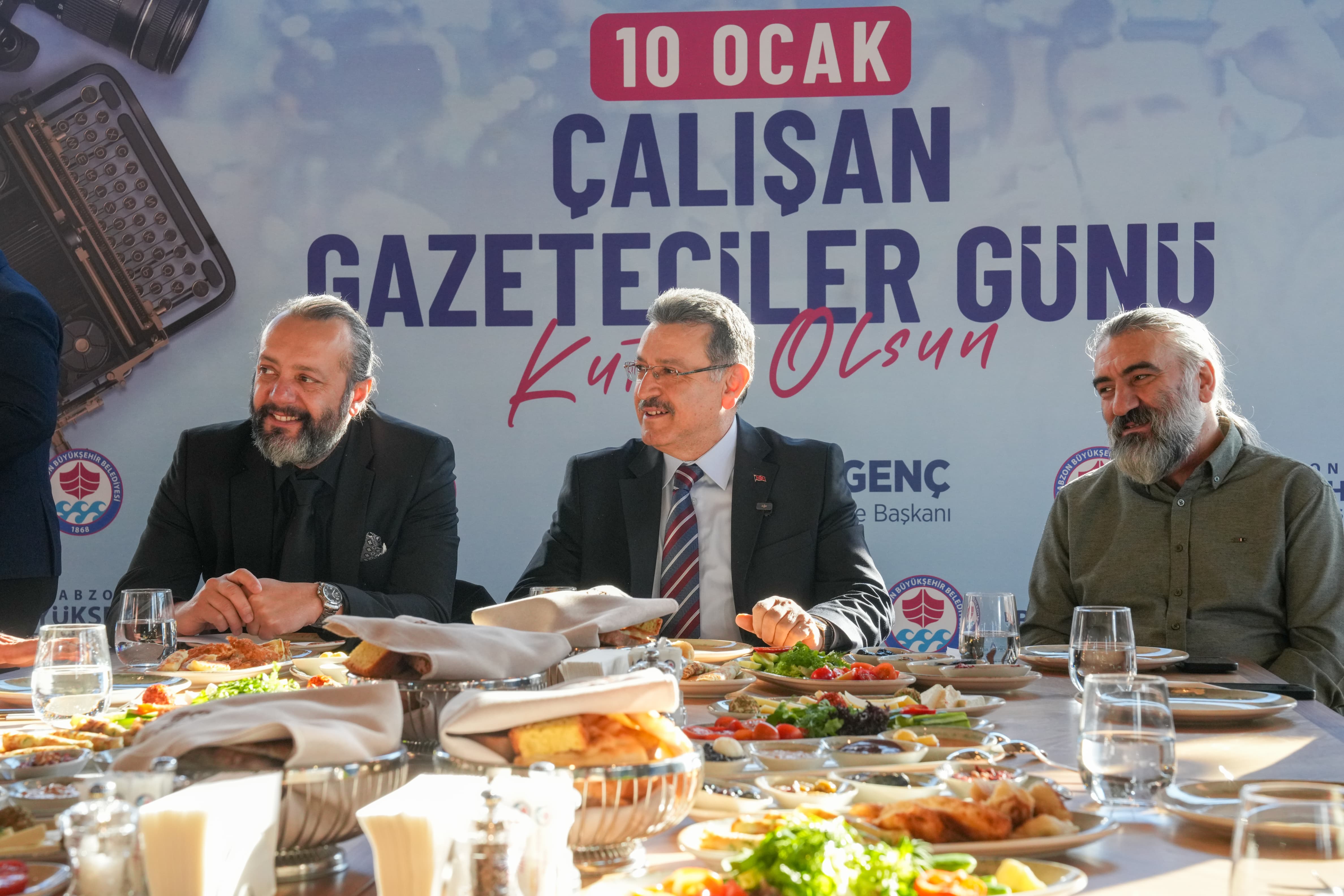 Başkan Genç Trabzon basınına seslendi:ŞEHRİN HİKAYESİNİ BİRLİKTE YAZIYORUZ10 Ocak Çalışan Gazeteciler Günü nedeniyle basın çalışanlarını kahvaltıda ağırlayan Büyükşehir Belediye Başkanı Ahmet Metin Genç, "Çok önemli ve meşakkatli bir görev yapıyorsunuz. Şehrin hikayesini birlikte yazıyoruz" dedi.Trabzon Büyükşehir Belediye Başkanı Ahmet Metin Genç, 10 Ocak Çalışan Gazeteciler Günü nedeniyle şehirde görev yapan basın mensuplarıyla EYOF Tesislerinde düzenlenen kahvaltı programında buluştu. Yoğun katılımın olduğu programda, Büyükşehir Belediyesi Basın Yayın ve Halkla İlişkiler Dairesi Başkanlığı’nca gazeteciler için hazırlanan video büyük alkış aldı.ZOR AMA KUTSAL BİR MESLEK İCRA EDİLİYOR