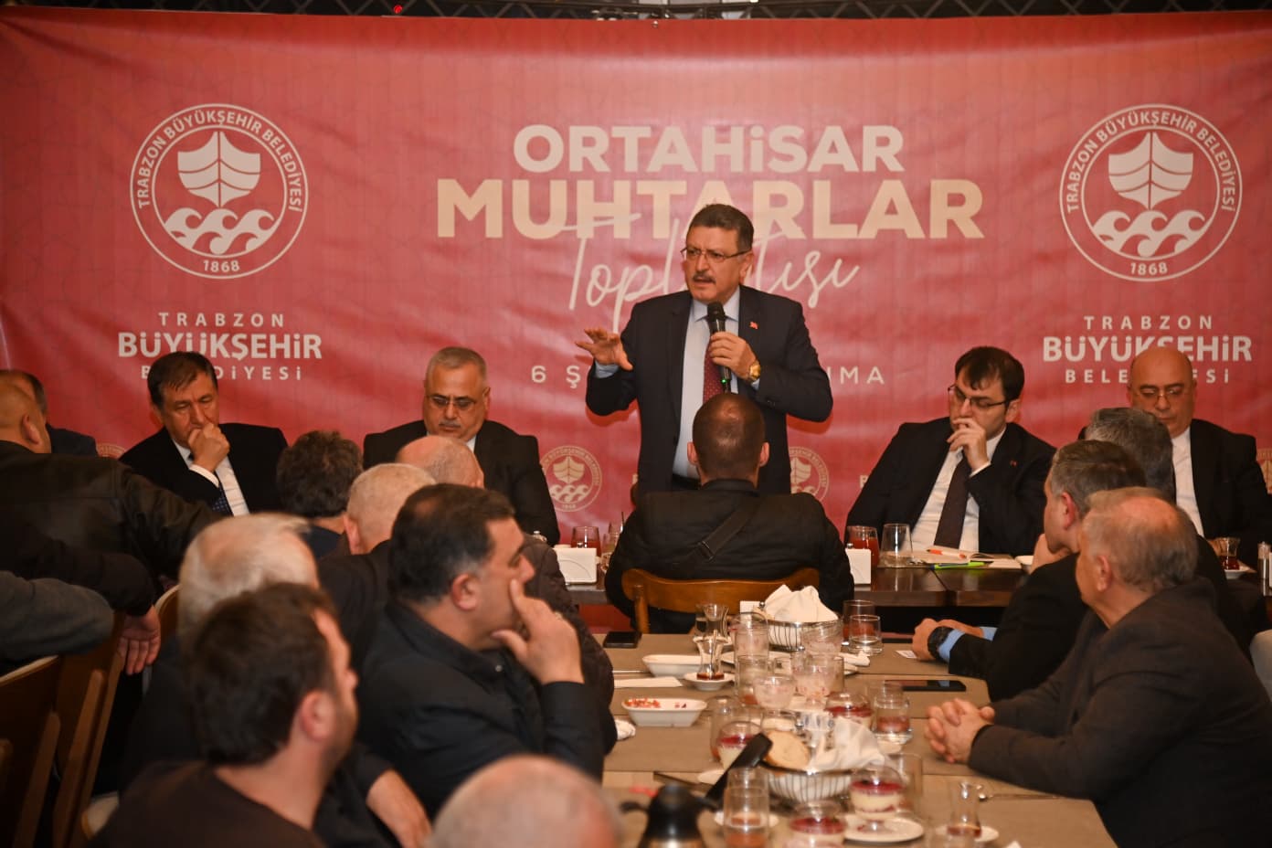 Başkan Genç muhtarlara seslendi:SİYASİ AYRIM YAPMADAN HİZMET EDECEĞİZOrtahisar Muhtarlar Toplantısı’na katılan Büyükşehir Belediye Başkanı Ahmet Metin Genç, halkın iradesine saygı duyduklarını ve siyasi ayrım gözetmeden hizmet edeceklerini vurguladı.Trabzon Büyükşehir Belediye Başkanı Ahmet Metin Genç, Ortahisar Muhtarlar Toplantısı’na katıldı. Trabzon Muhtarlar Federasyonu Başkanı Bekir Aktürk, mahalle muhtarları ve belediye yetkililerinin de katıldığı toplantıda şehrin sorunları ve çözüm önerileri masaya yatırıldı. Muhtarlara seslenen Başkan Genç, siyasi ayrım yapmadan vatandaşa hizmet anlayışını benimsediklerini vurgulayarak, “Ortahisar’da halkımız farklı bir tercih yapmış olabilir. Bizim siyasi partimizin dışında başka bir siyasi partinin adayı belediye başkanımız olabilir. Ben 25 senedir aktif siyaset içerisindeyim. Halkın iradesini sorgulamayız. Büyükşehirde Ahmet Metin Genç seçilmiştir, Ortahisar’da Ahmet Kaya seçilmiştir. Bu iradeyi sorgulamayız. Seçime kadar siyaset, ondan sonra hizmet. Ekonomik koşullar var, darlıklar var, sıkıntılar var ama biz bahane üretme makamına değil, çözüm makamına geldik. Bahane üretmiyoruz, çözüm üreteceğiz. Ortahisar Belediyemiz ile el ele verip, ‘burası oradadır, burası buradadır’ demeden çalışacağız” diye konuştu.ÇALIŞMALAR HAKKINDA BİLGİ VERDİ