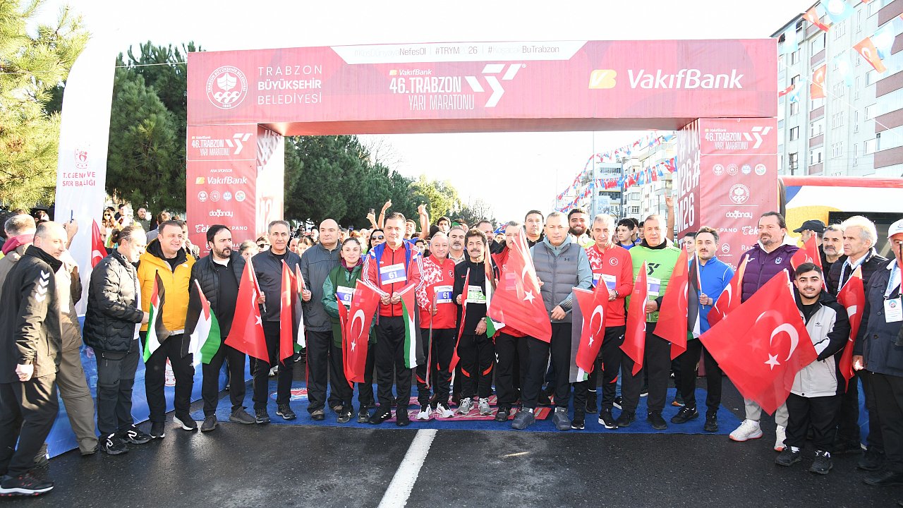 TRABZON'DA COŞKULU MARATONTrabzon Büyükşehir Belediyesi’nce bu yıl, ‘Koş, Dünyaya Nefes Ol’ mottosuyla düzenlenen VakıfBank 46. Uluslararası Trabzon Yarı Maratonu, yoğun katılımla gerçekleşti. Trabzon Büyükşehir Belediye Başkanı Ahmet Metin Genç, Trabzon’un sporun tüm branşlarının olimpik düzeyde icra edilebildiği bir şehir olduğuna dikkat çekerek, 50. yılda tam maraton olarak organizasyonu yapmayı hedeflediklediklerini açıkladı.Trabzon’un düşman işgalinden kurtuluşunun 108. yıl dönümü etkinlikleri kapsamında Büyükşehir Belediyesi Gençlik ve Spor Dairesi Başkanlığı organizasyonunda, ana sponsorluğunu VakıfBank’ın üstlendiği; Trabzon Valiliği, Gençlik ve Spor İl Müdürlüğü, Türkiye Atletizm Federasyonu ve Doğu Karadeniz Kalkınma Ajansı’nın destekleriyle düzenlenen Uluslararası Trabzon Yarı Maratonu’nun 46’ncısı yoğun katılımla gerçekleştirildi. Türkiye’de meydana gelen orman yangınlarına dikkat çekmek ve orman yangınlarının önlenmesi konusunda farkındalık oluşturulması amacıyla ‘Koş, Dünyaya Nefes Ol’ mottosuyla düzenlenen yarışın startını, Büyükşehir Belediye Başkanı Ahmet Metin Genç, Vali Tahir Şahin, Ortahisar Kaymakamı Gürkan Demirkale, Türkiye Atletizm Federasyonu Başkanı Ahmet Karadağ, Gençlik ve Spor İl Müdürü Lokman Arıcıoğlu, DOKA Genel Sekreteri Kemal Akpınar, Trabzon Ticaret ve Sanayi Odası Başkanı Erkut Çelebi ile birlikte verdi. 41 ülkeden toplam 2 bin 936 sporcunun yer aldığı uluslararası organizasyon, Halk Koşusu ile başladı. Ardından 21 kilometrelik Uluslararası Trabzon Yarı Maratonu, 10 kilometrelik Çeyrek Maraton ve 1 kilometrelik Çocuk Koşusu parkurlarında yarışlar gerçekleştirildi.HEDEFİMİZ TAM MARATON’A DÖNÜŞTÜRMEK