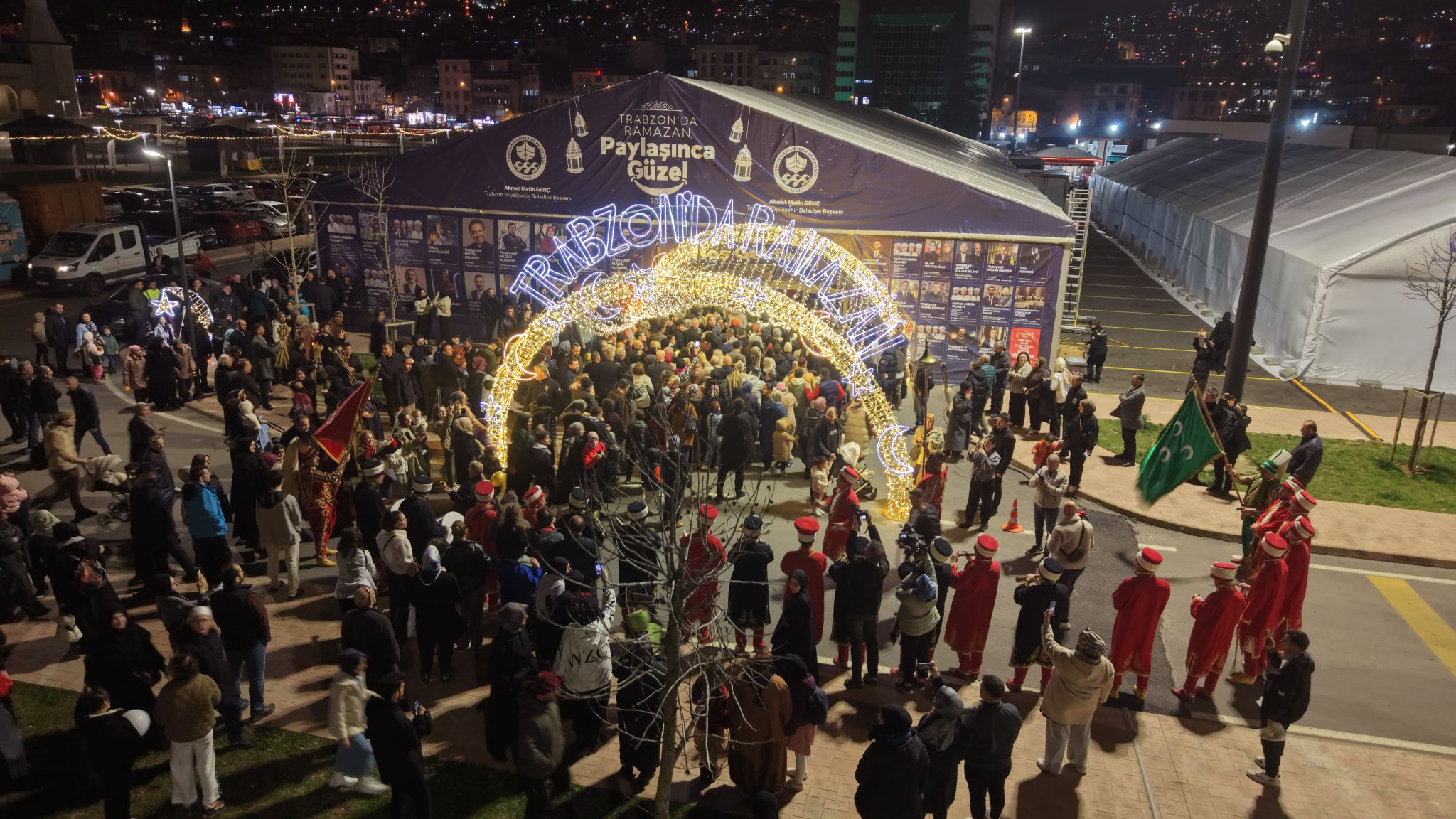 TRABZON'DA RAMAZAN'A COŞKULU KARŞILAMATrabzon Büyükşehir Belediyesi’nin Ramazan etkinlikleri, Başkan Ahmet Metin Genç ve coşkulu bir kalabalığın katılımıyla başladı. Ramazan çadırında her akşam yaklaşık bin kişiye iftar verileceğini ifade eden Başkan Genç, “Büyükşehir Belediyesi olarak 18 ilçede halk iftarları düzenleyeceğiz. Bunun yanı sıra 1500 aileye evlerinde iftar yemeği ulaştırarak ihtiyaç sahiplerine destek sağlayacağız” dedi.Trabzon Büyükşehir Belediye Başkanı Ahmet Metin Genç, Ramazan ayının manevi atmosferini şehre taşıyan Ramazan Sokağı’nın açılış programına katıldı. Hanife Hatun Camii önünde mehter eşliğinde yapılan kortej yürüyüşüyle başlayan programa yüzlerce vatandaş katıldı. Yürüyüşün ardından etkinlik çadırında toplanan vatandaşlarla bir araya gelen Başkan Genç, açılış duası öncesinde yaptığı konuşmada Ramazan ayının manevi önemine vurgu yaptı.AMACIMIZ BİRLİK BERABERLİK İÇİNDE YAŞAMAK