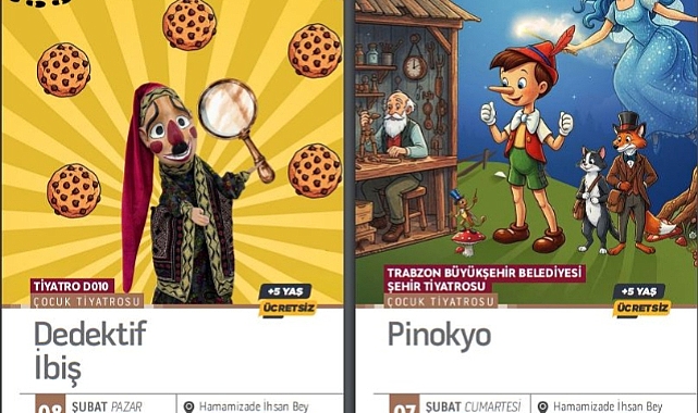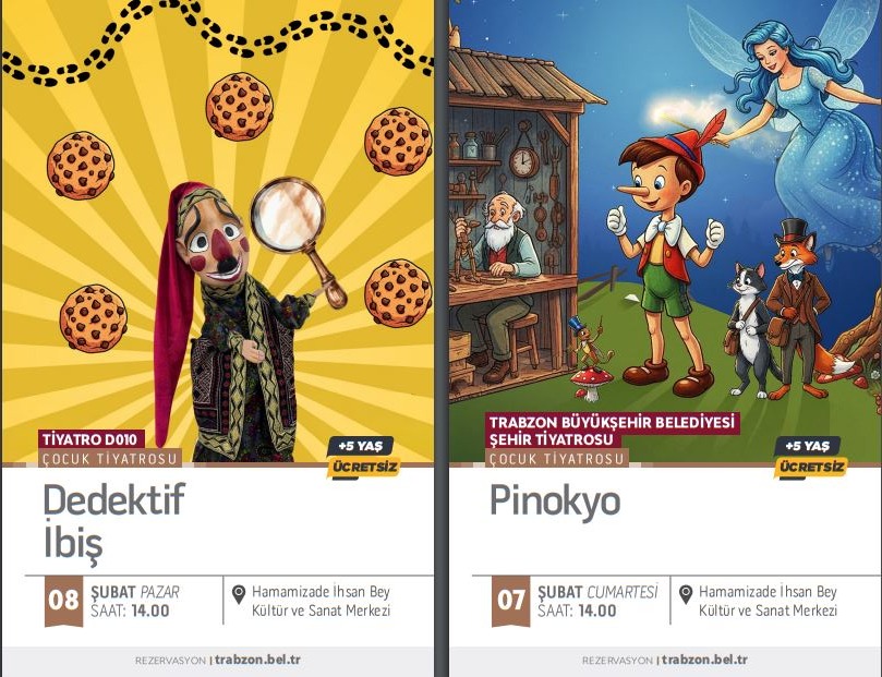 TRABZON’DA ŞUBAT AYI KÜLTÜR VE SANATLA RENKLENECEKTrabzon Büyükşehir Belediyesi, kültür ve sanat etkinliklerini vatandaşlarla buluşturmaya devam ediyor. Şubat ayı etkinlik takviminin dolu dolu geçeceğini belirten Büyükşehir Belediye Başkanı Ahmet Metin Genç, tüm vatandaşları etkinliklere davet ederek, “İnanıyoruz ki kültür ve sanat bir şehrin kalbidir. Kalbi güçlü olan şehirler, geleceğe umutla yürür” ifadelerini kullandı.Trabzon Büyükşehir Belediyesi, Şubat boyunca da kültür ve sanat etkinliklerini vatandaşlarla buluşturacak. Büyükşehir Belediyesi Kültür, Sanat ve Sosyal İşler Dairesi Başkanlığı tarafından hazırlanan program dahilinde tiyatro oyunları, konserler, söyleşiler ve sergiler düzenlenecek. Hamamizade İhsan Bey Kültür ve Sanat Merkezi’nde gerçekleştirilecek etkinlikler kapsamında, 6 Şubat Cuma günü saat 20.00’de Trabzon Büyükşehir Belediyesi Şehir Tiyatrosu tarafından “Trabzon’un Kayıp Yılları: Muhacirlik” adlı yetişkin oyunu sahnelenecek. 7 Şubat Cumartesi günü saat 14.00’te “Pinokyo”, 8 Şubat Pazar günü saat 14.00’te ise Tiyatro D010 tarafından “Dedektif İbiş” adlı çocuk oyunu izleyiciyle buluşacak. 13 Şubat Cuma günü saat 20.00’de Akçaabat Belediye Tiyatrosu’nun “Varildeki Adam” adlı yetişkin oyunu sahnelenecek. 14 Şubat Cumartesi günü saat 14.00’te Tiyatro Panki tarafından “Ağustos Böceği ve Karınca”, 15 Şubat Pazar günü saat 14.00’te ise aynı topluluk tarafından “Değirmencinin Dansı” adlı çocuk oyunu sahne alacak.SÖYLEŞİ, SEMİNER, SERGİ VE KONSERLER