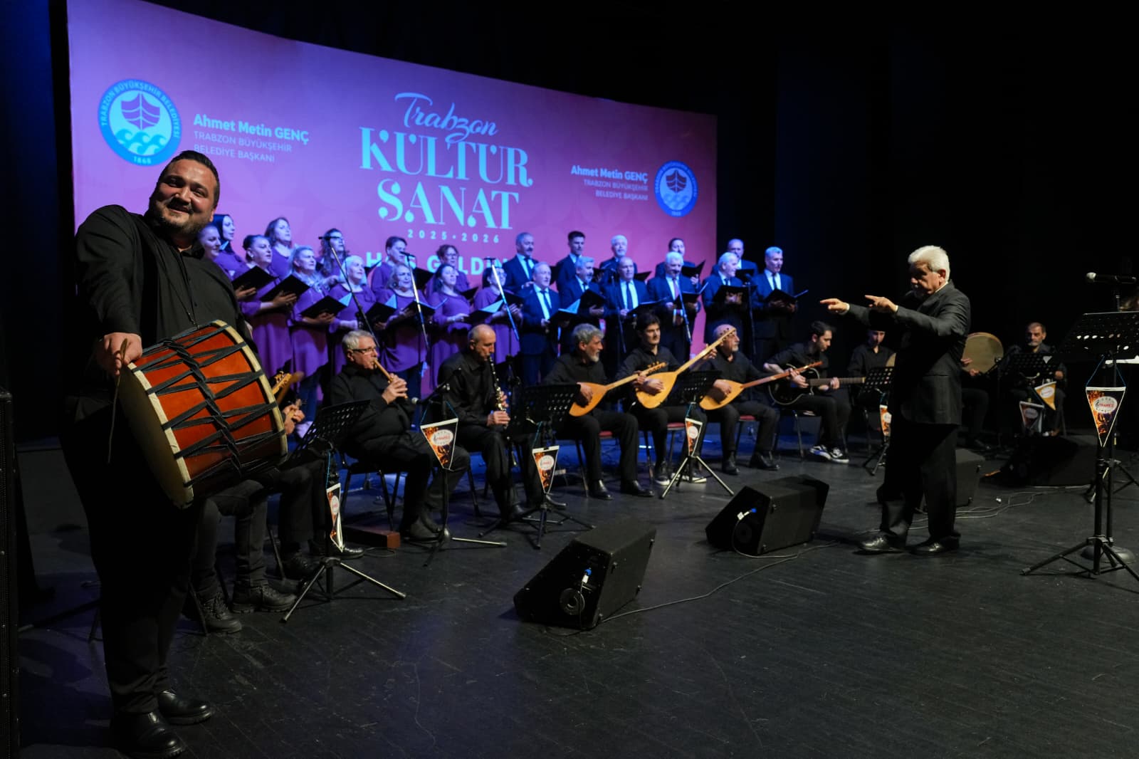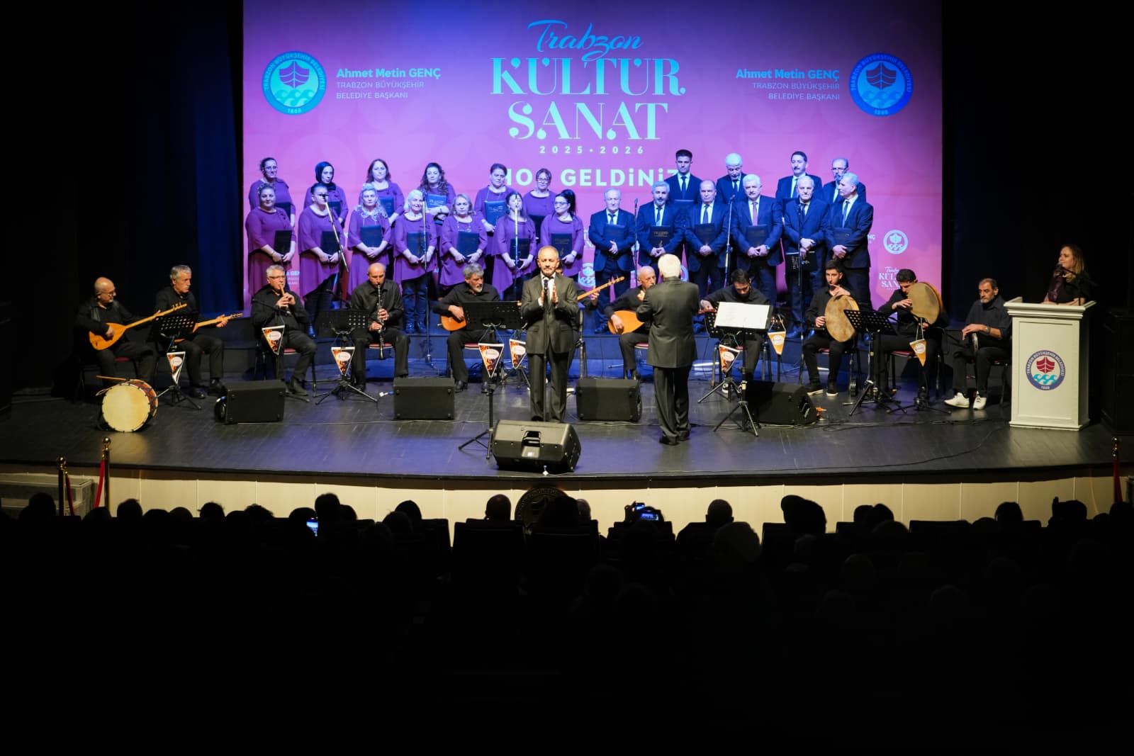 TRABZON’DA TÜRK HALK MÜZİĞİ RÜZGARI ESTİBüyükşehir Belediyesi’nin kültür sanat etkinlikleri kapsamında Trabzon Müzik Eğitim Merkezi Derneği tarafından düzenlenen Türk Halk Müziği Konseri, sanatseverlerden yoğun ilgi gördü.Trabzon Büyükşehir Belediyesi, kültür ve sanat etkinliklerini aralıksız sürdürüyor. Büyükşehir Belediyesi Kültür, Sanat ve Sosyal İşler Dairesi Başkanlığı'nca organize edilen Şubat ayı kültür sanat etkinlikleri kapsamında Hamamizade İhsan Bey Kültür ve Sanat Merkezi’nde düzenlenen Türk Halk Müziği konseri sanatseverlerden yoğun ilgi gördü. Trabzon Müzik Eğitim Merkezi Derneği üyelerinin sevilen türküleri seslendirdiği konserde, salonu dolduran izleyiciler, koro ve solistlerin başarılı performanslarıyla unutulmaz bir müzik ziyafeti yaşadı. Dinleyicilerin zaman zaman eserlere eşlik ettiği programın sonunda Koro Şefi Erol Uzun’a çiçek takdim edildi. Trabzon Büyükşehir Belediyesi’nin kültür sanat etkinlikleri yıl boyunca devam edecek.