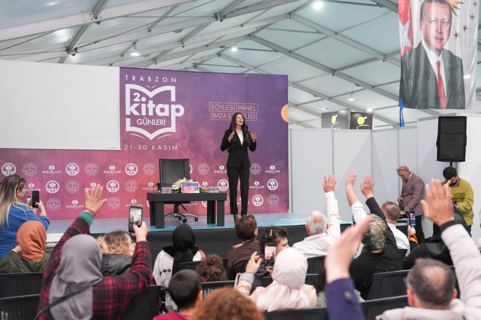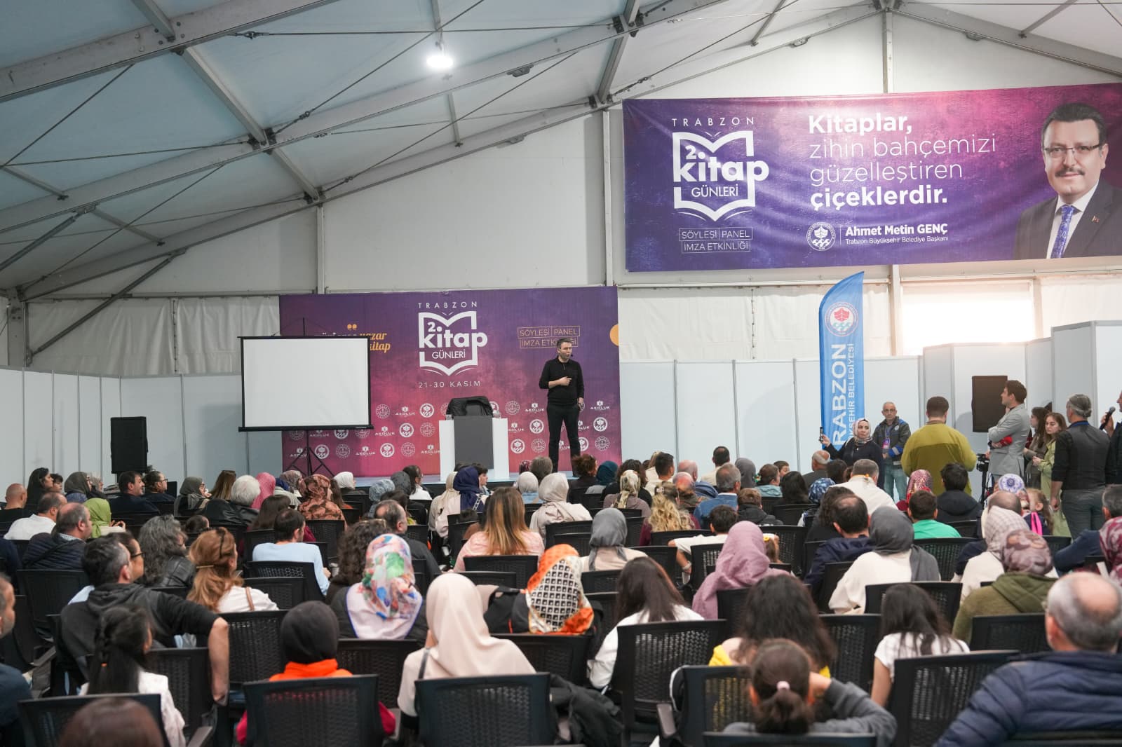 TRABZON KİTAP GÜNLERİ’NE ZİYARETÇİ AKINI SÜRÜYORTrabzon Büyükşehir Belediyesi tarafından geleneksel hale getirilen Trabzon Kitap Günleri’nin ikincisi, 7’den 70’e kitapseverlerin yoğun ilgisiyle devam ediyor. Açıldığı günden bu yana on binlerce ziyaretçiyi ağırlayan fuar, yazar buluşmaları, imza günleri ve söyleşilerle renkli bir kültür şöleni sunuyor. Kentin en prestijli kültür-sanat organizasyonları arasında yer alan Kitap Günleri, sadece Trabzon’da değil, bölge illerinde de büyük karşılık buldu. Fuarın ilk dört gününde gerçekleşen etkinliklerde Ahmet Ümit, Tarık Tufan, Kahraman Tazeoğlu, Serkan Karaismailoğlu, Mehmet Akif Ersoy, Fatih Duman ve Tuna Kiremitçi'nin de aralarında bulunduğu çok sayıda yazar okurlarıyla bir araya geldi.BU HAFTA YOĞUN İMZA TAKVİMİ