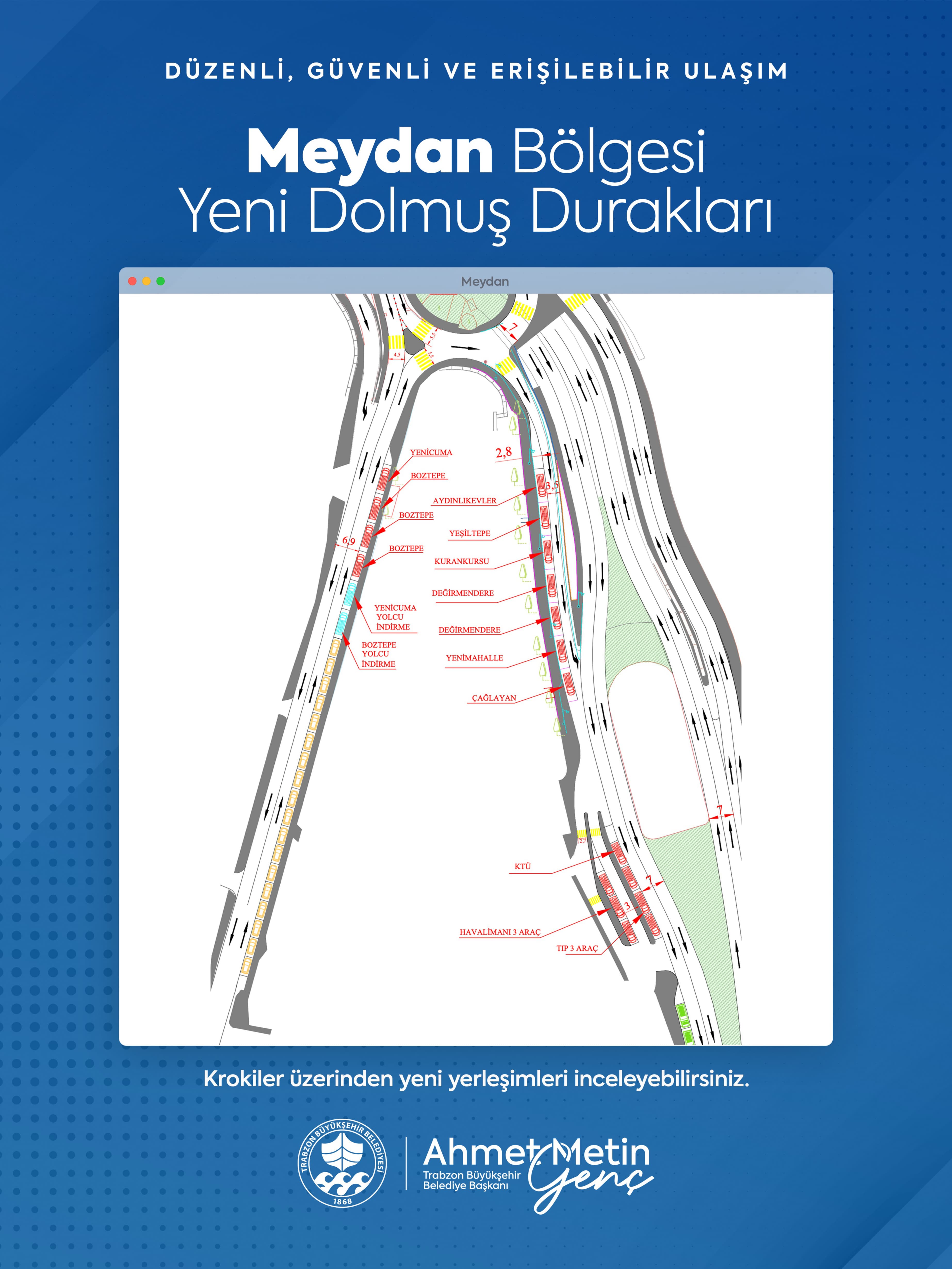 YENİ DOLMUŞ DÜZENLEMESİNDEN VATANDAŞ MEMNUN Trabzon Büyükşehir Belediyesi tarafından şehir merkezindeki toplu ulaşımı daha düzenli hale getirmek amacıyla hazırlanan yeni dolmuş düzenlemesi yürürlüğe girdi. Vatandaşlar, yapılan düzenlemeden memnun olduklarını ifade etti.Trabzon Büyükşehir Belediyesi'nin şehir merkezindeki trafik yoğunluğunu azaltmak ve toplu ulaşımı daha düzenli hale getirmek amacıyla hazırladığı yeni dolmuş düzenlemesi uygulanmaya başladı. Yeni düzenlemeyle birlikte Meydan bölgesinde Yenicuma, Boztepe, Aydınlıkevler, Yeşiltepe, Kuran Kursu, Değirmendere, Yenimahalle, Çağlayan, KTÜ, Havalimanı ve Tıp Fakültesi dolmuşları eski Baro binası ile Fatih Parkı yanına konuşlandırıldı. Mumhaneönü bölgesinde ise Aydınlıkevler, Beşirli, Karşıyaka, Yeşiltepe, Yenimahalle, Bahçecik, Çamlık, Kuruçeşme, Çatak, Camiyanı ve Kuran Kursu dolmuş hatları, kendilerine ayrılan duraklarda hizmet vermeye başladı. Kalkış noktalarında sınırlı sayıda dolmuş bulunduruluyor ve dolup hareket eden aracın yerine depolama alanından yeni araç geliyor.PAZARKAPI’YA YERLEŞTİLER